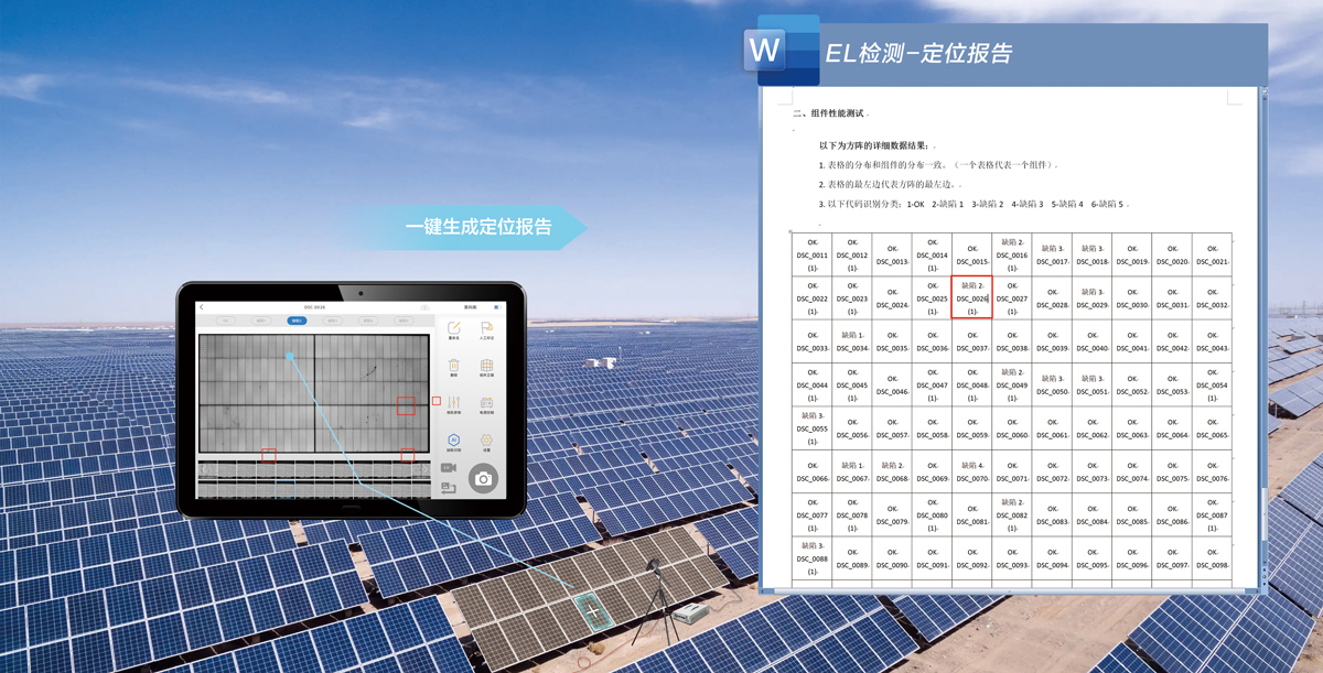 卓越的5G信號模式:150米范圍超強電磁干擾信號屏蔽,EL檢測更順暢,同時具備多種組件掃碼匹配模式,檢測圖像自動匹配組件條碼,方便溯源查詢。