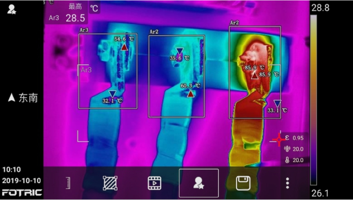本機可以設置環(huán)境溫度為基準溫度,屏蔽環(huán)境溫度干擾,自動計算設備的溫升,同時可以自動計算電氣設備的相間溫差,實現(xiàn)更科學的診斷分析。