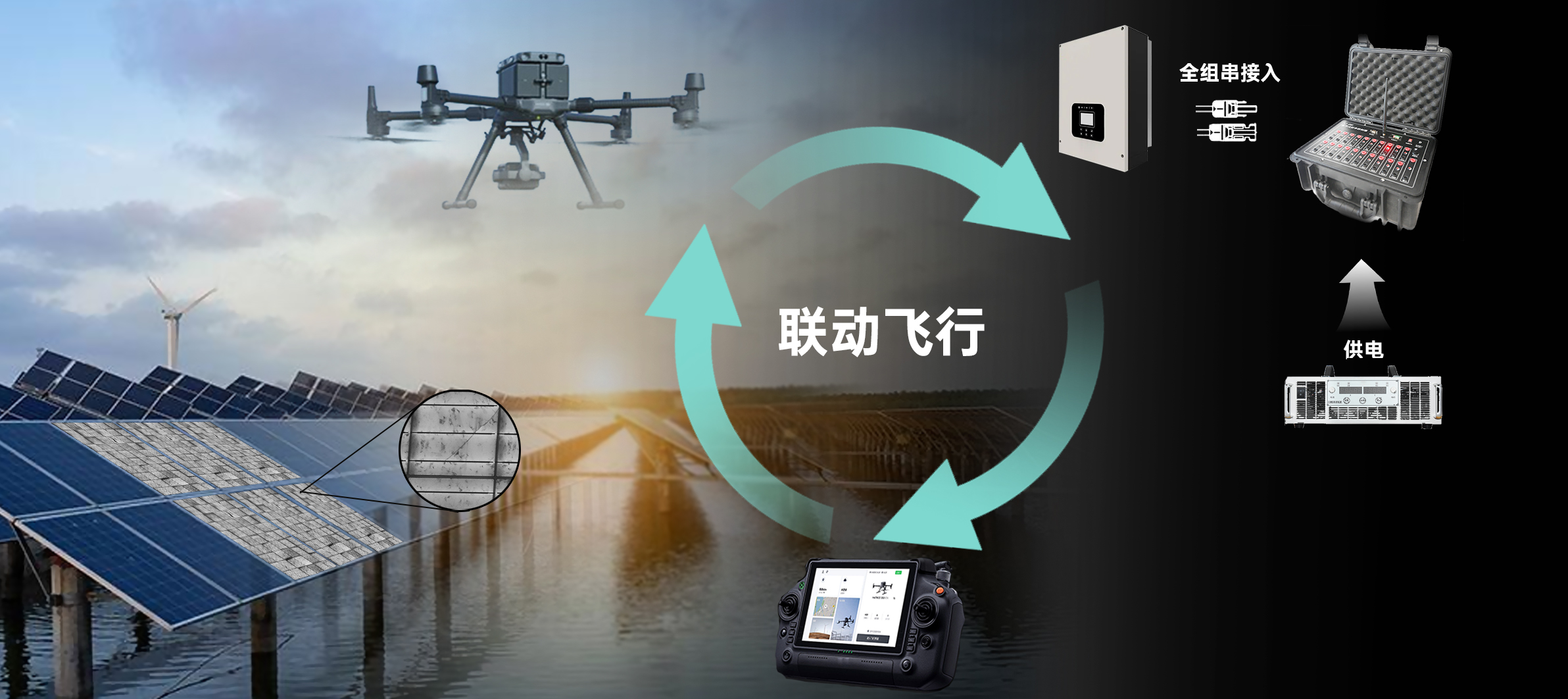 針對(duì)光伏電站EL上電特性,定制開發(fā)可同步控制1~20路組串自動(dòng)切換上電模塊,實(shí)現(xiàn)真正意義上的無人化自動(dòng)巡檢,可在匯流箱/逆變器處控制全部組串,實(shí)現(xiàn)200米范圍的無線通訊自動(dòng)上電并聯(lián)動(dòng)無人機(jī)航線拍攝。